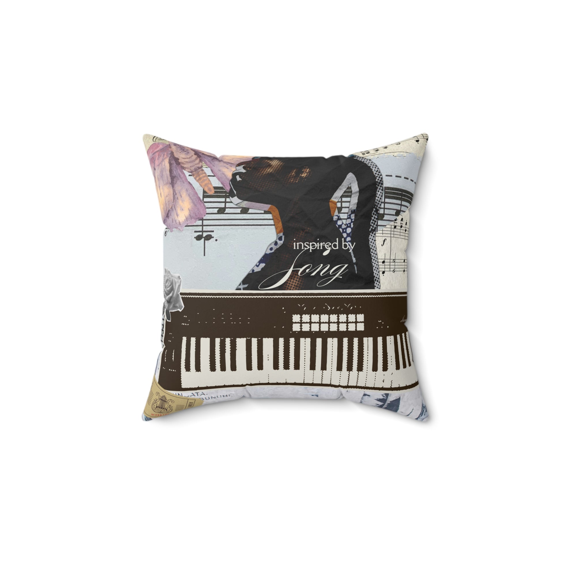 Inspired by Song. Add a touch of charm to your living space with this delightful square pillow and enhance a couch, bed, or accent chair. Featuring a complimentary design on front and back it brings a playful vibe to any room. This pillow is an ideal gift for housewarming parties.