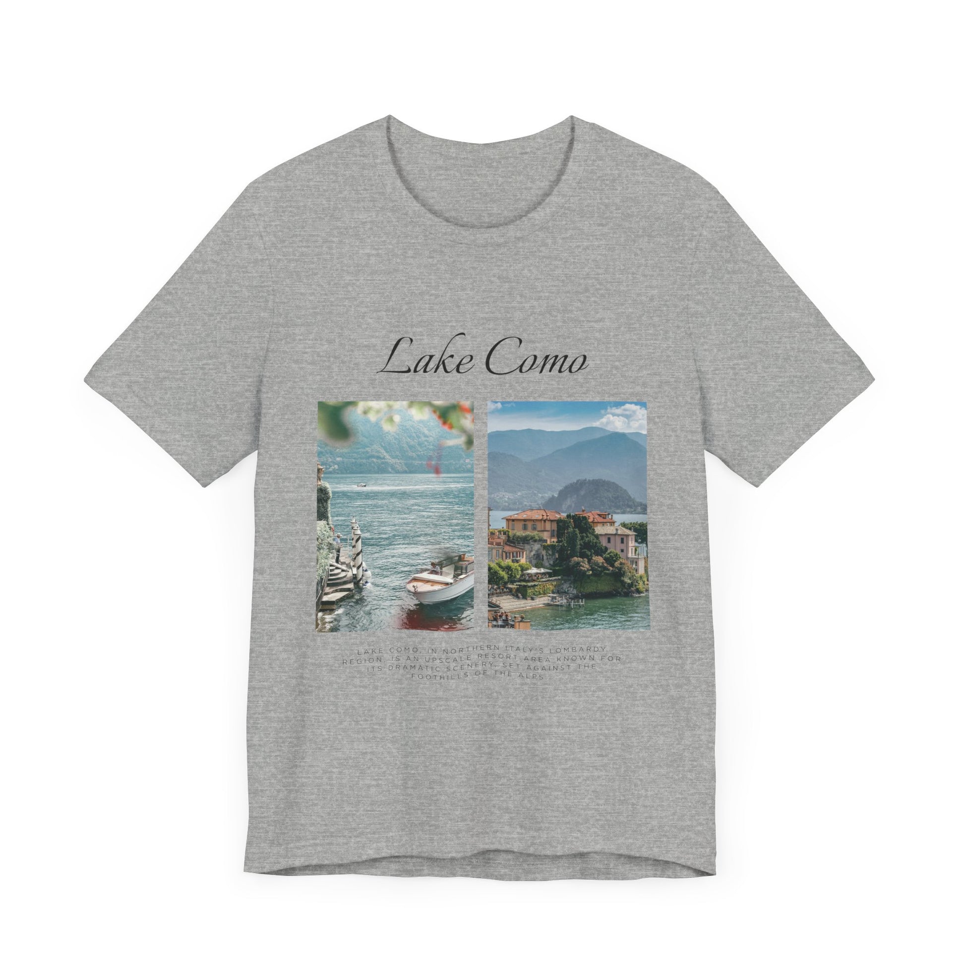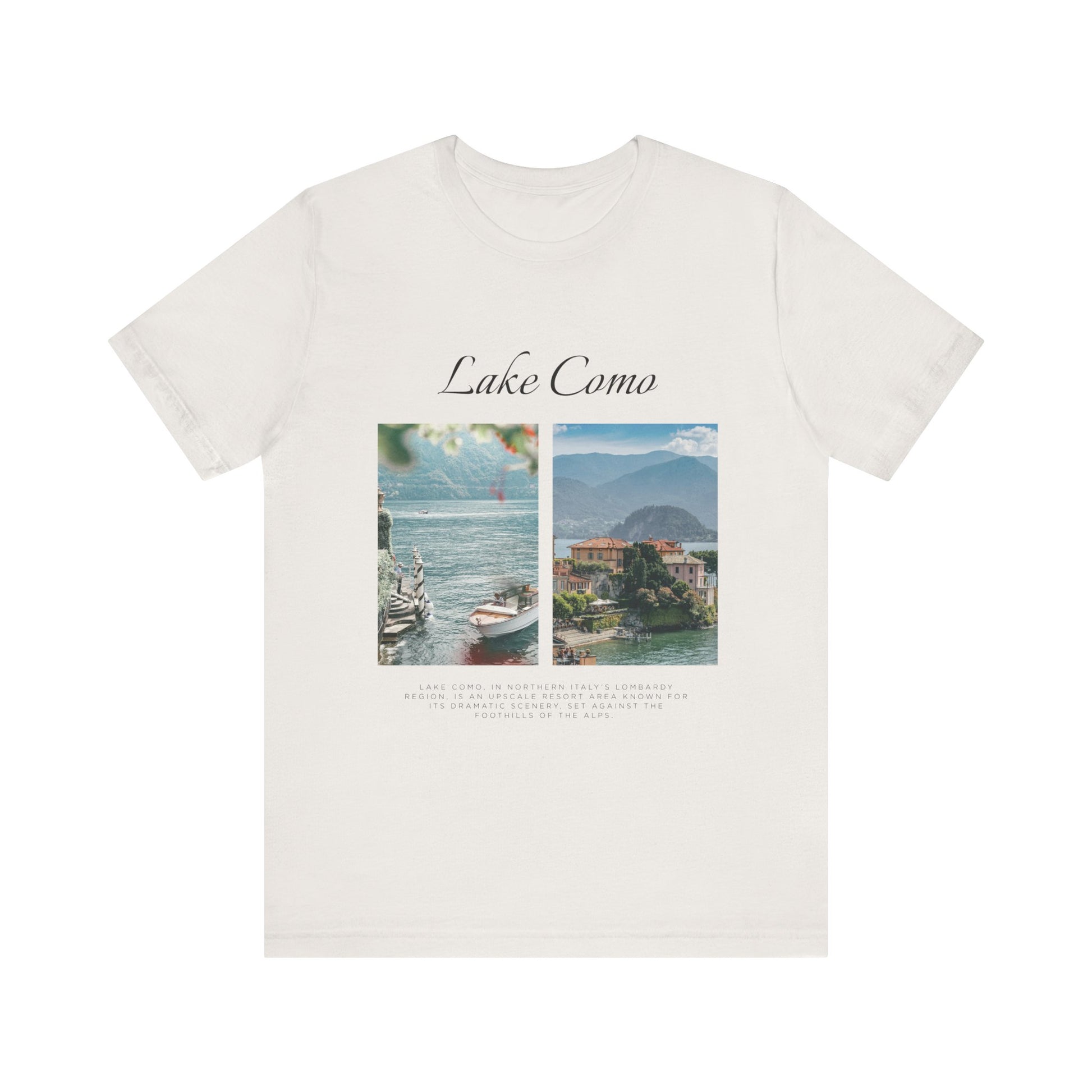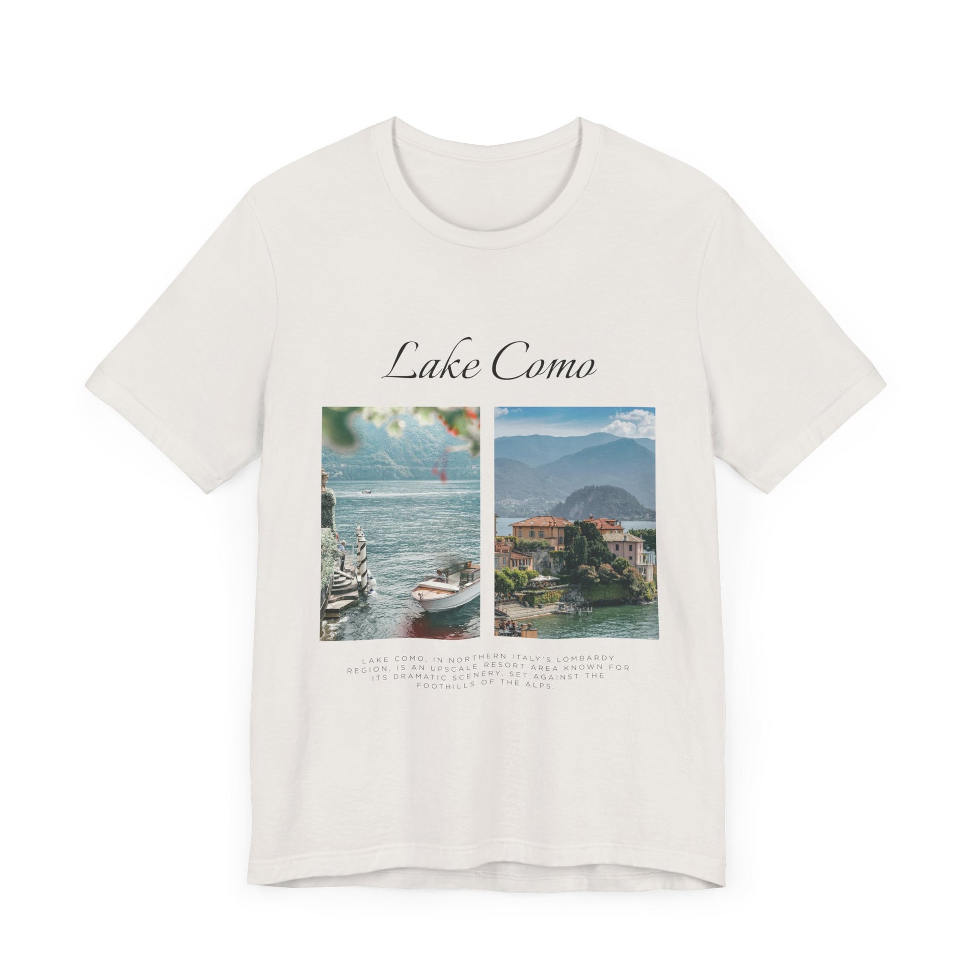 Lake Como. This classic unisex jersey short sleeve tee fits like a well-loved favorite. Soft cotton and quality print will make you fall in love with it over and over again. Made from a lightweight fabric that is easy to layer and is breathable. Perfect for active and leisure wear.