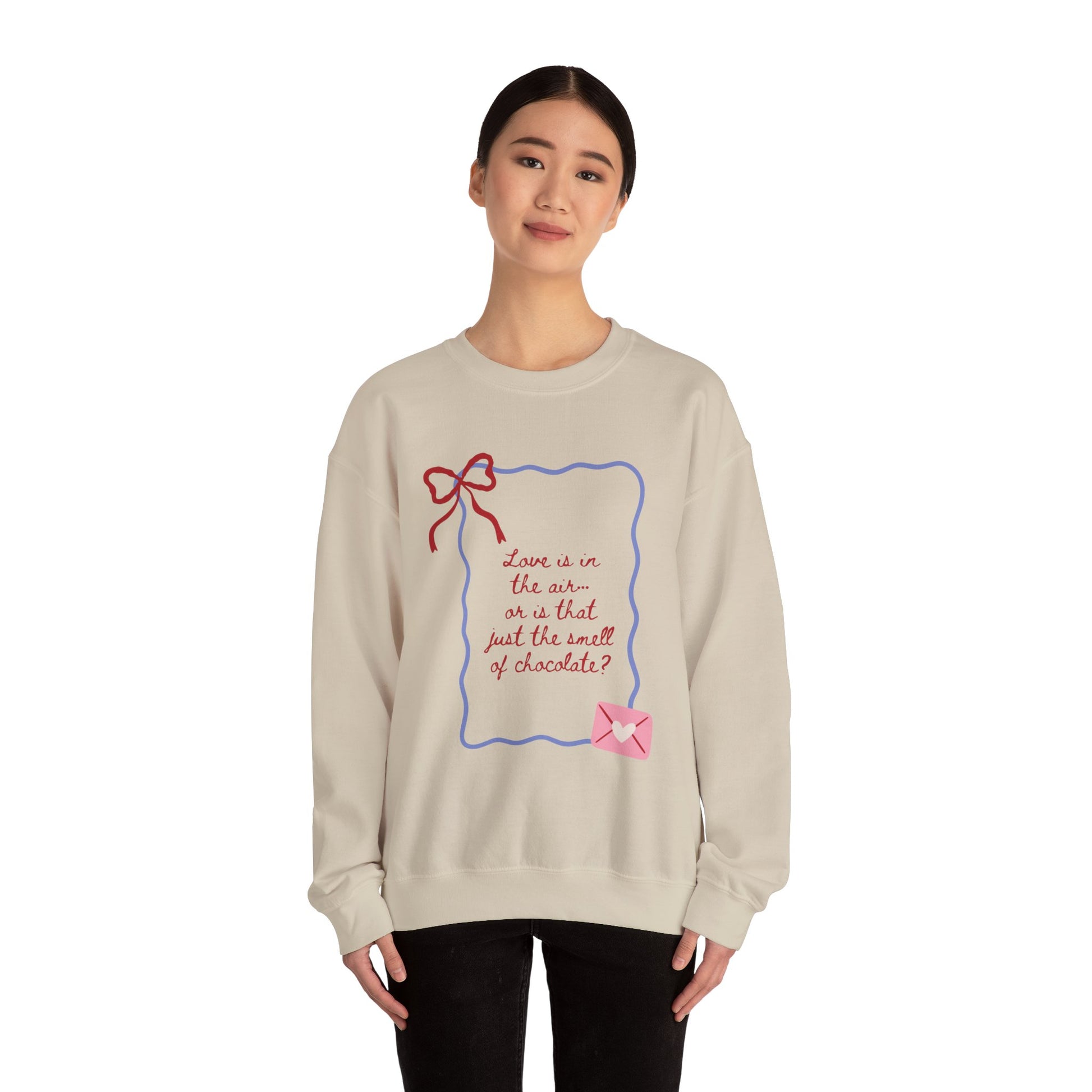 Love is in the Air. This stylish unisex crewneck sweatshirt is designed with comfort and quality in mind. It's crafted using soft fabric for maximum breathability. It boasts a relaxed fit for versatility and year-round wear.