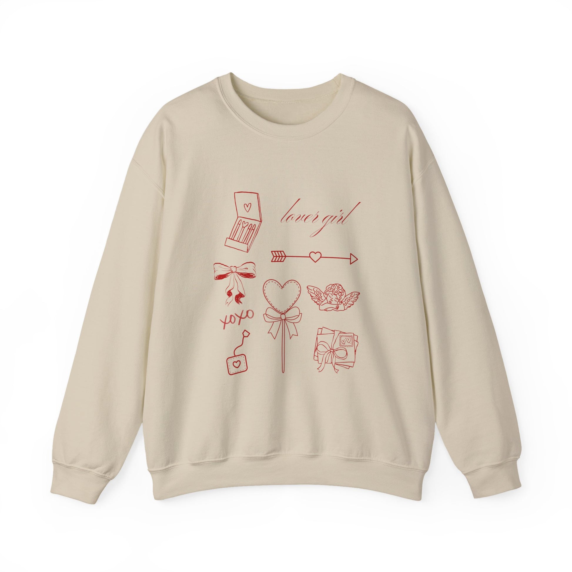 Lover Girl Graphic Doodle Valentine's Day Sweatshirt, Gifts for Her, Vday gift ideas, Valentine's Sweater, Trendy Aesthetic, Valentine Gift